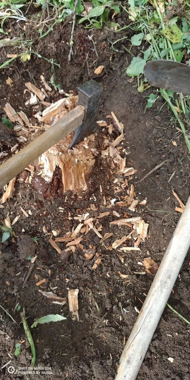 同修DX:刨木桩子。
